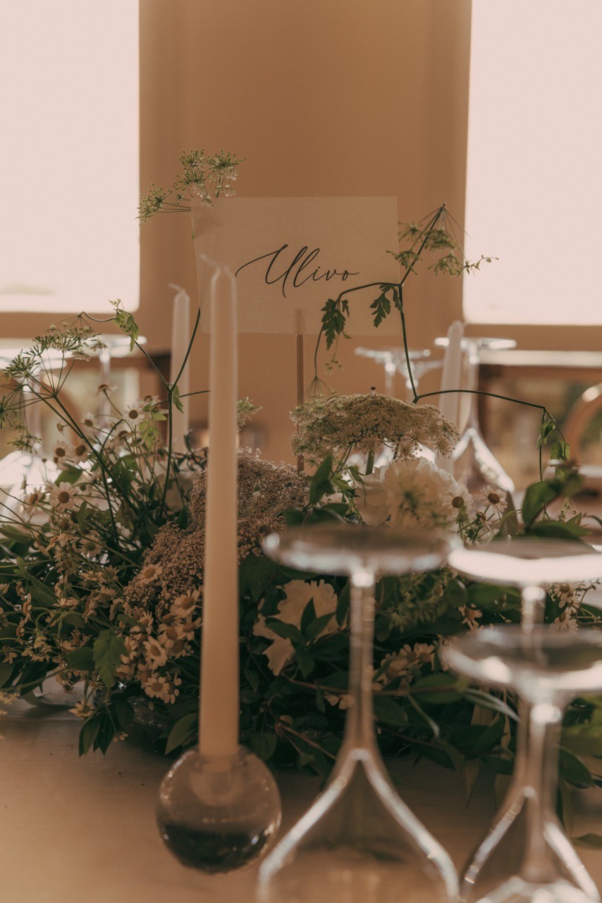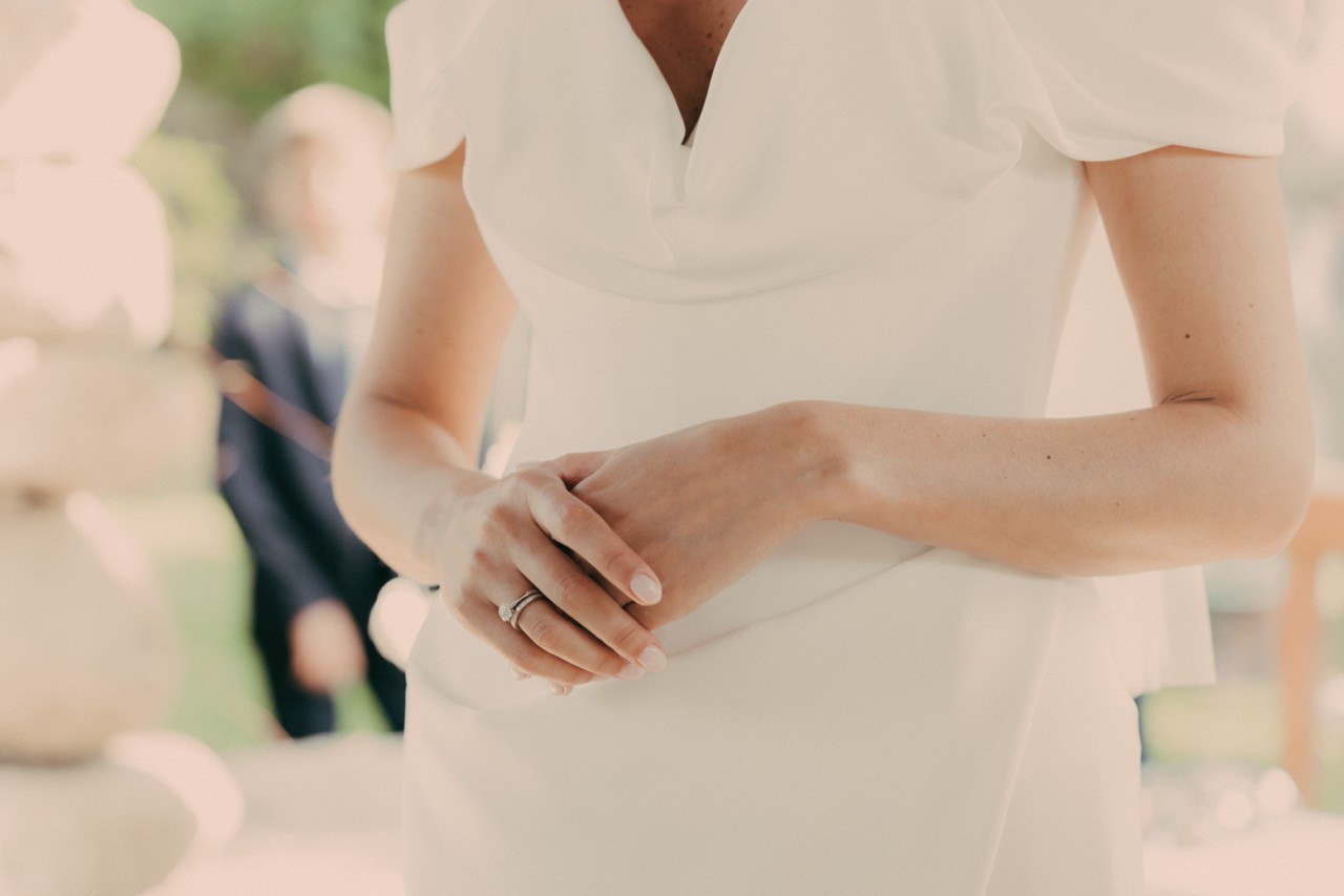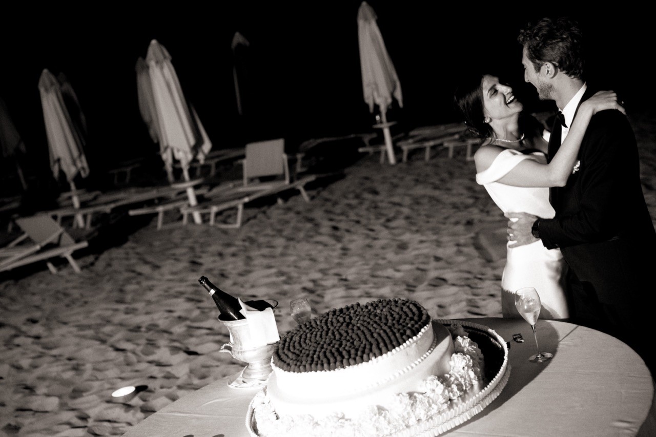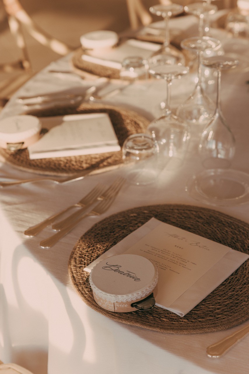 Beatrice e Alberto si incontrano sotto gli ulivi, in una piccola chiesa di sassi chiari, essenziale e raccolta, quasi nascosta tra il verde, circondati da chi li ama. Il sole accarezza il velo, le fronde li incorniciano con leggerezza, la pietra trattiene il calore del giorno. Poi la gioia dopo il sì, tra chicchi di riso e petali sospesi nell'aria.