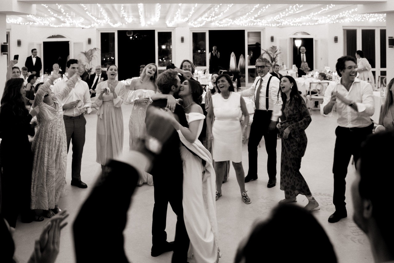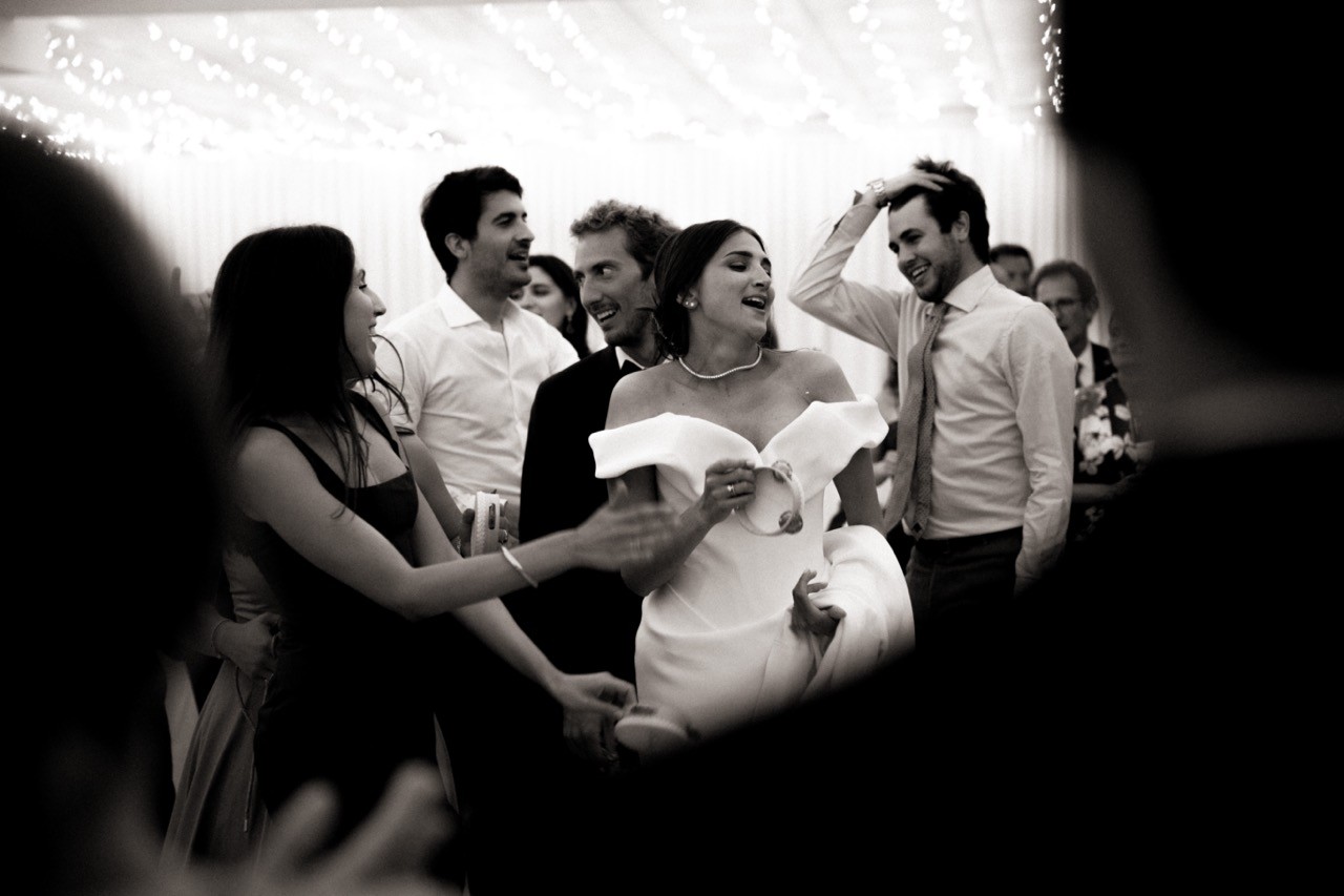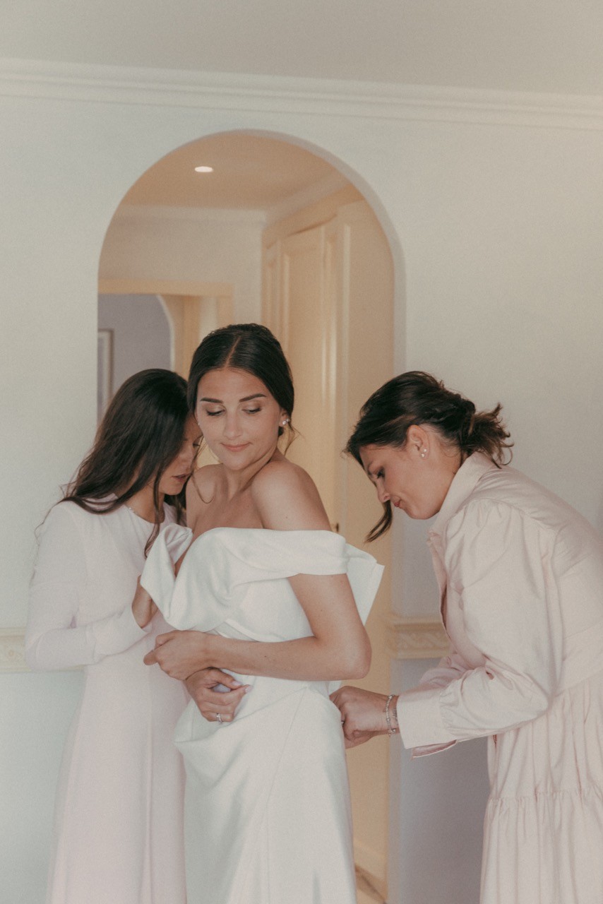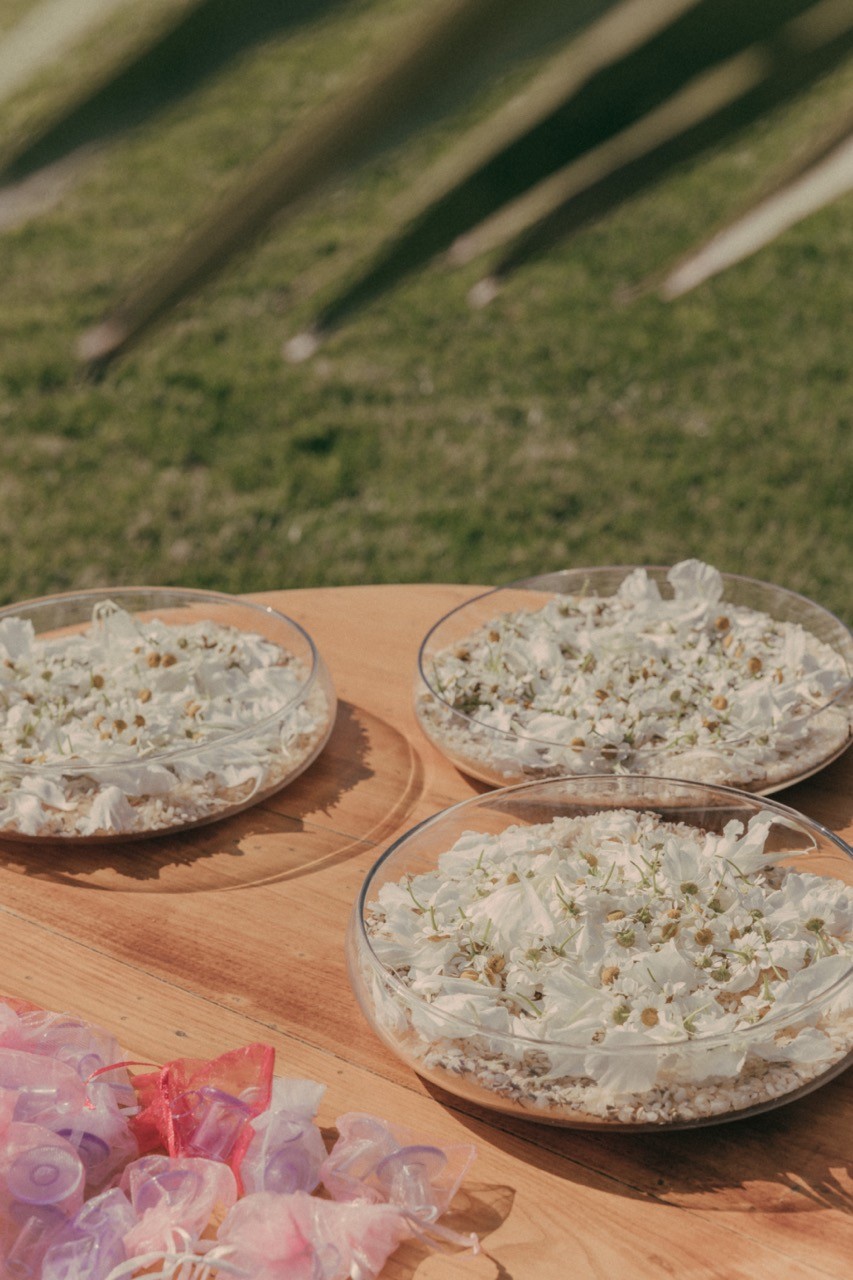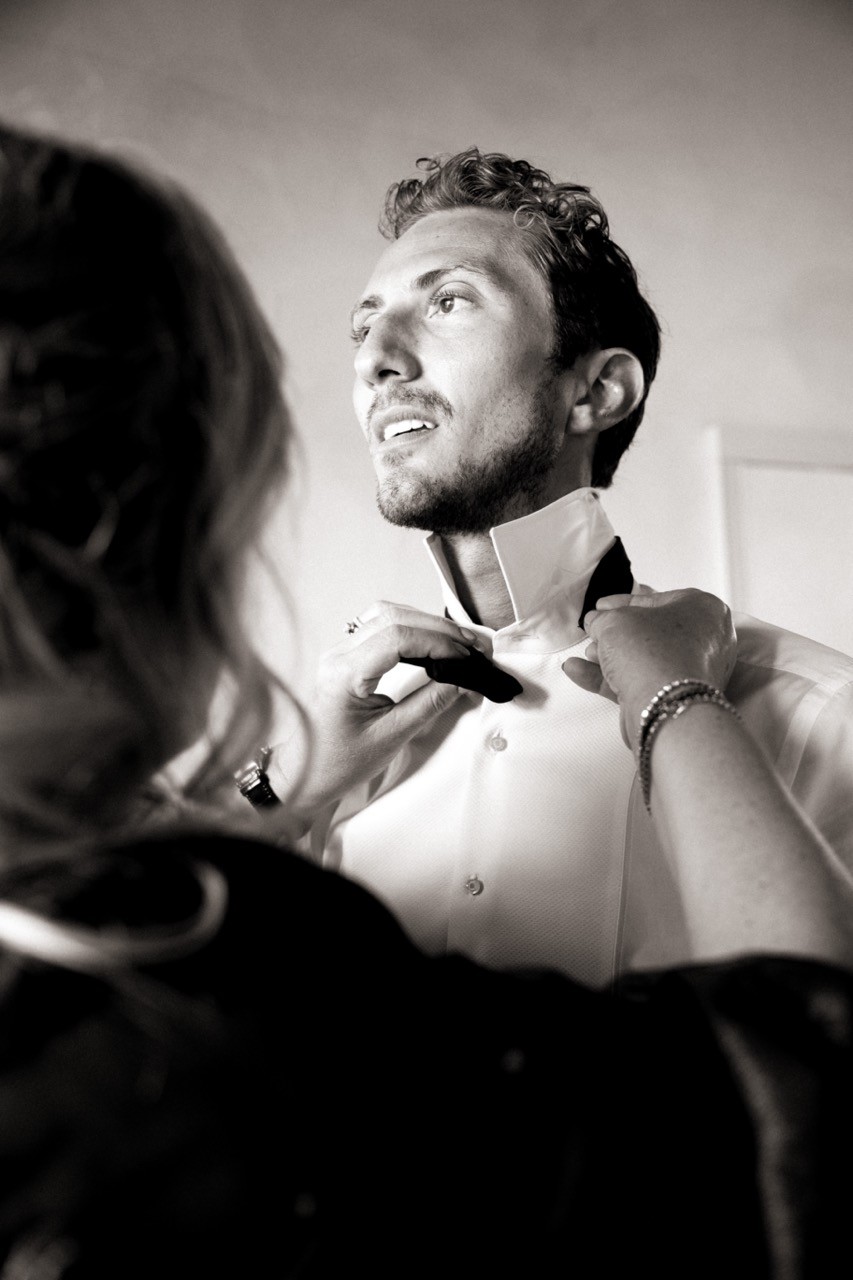 Beatrice e Alberto si incontrano sotto gli ulivi, in una piccola chiesa di sassi chiari, essenziale e raccolta, quasi nascosta tra il verde, circondati da chi li ama. Il sole accarezza il velo, le fronde li incorniciano con leggerezza, la pietra trattiene il calore del giorno. Poi la gioia dopo il sì, tra chicchi di riso e petali sospesi nell'aria.