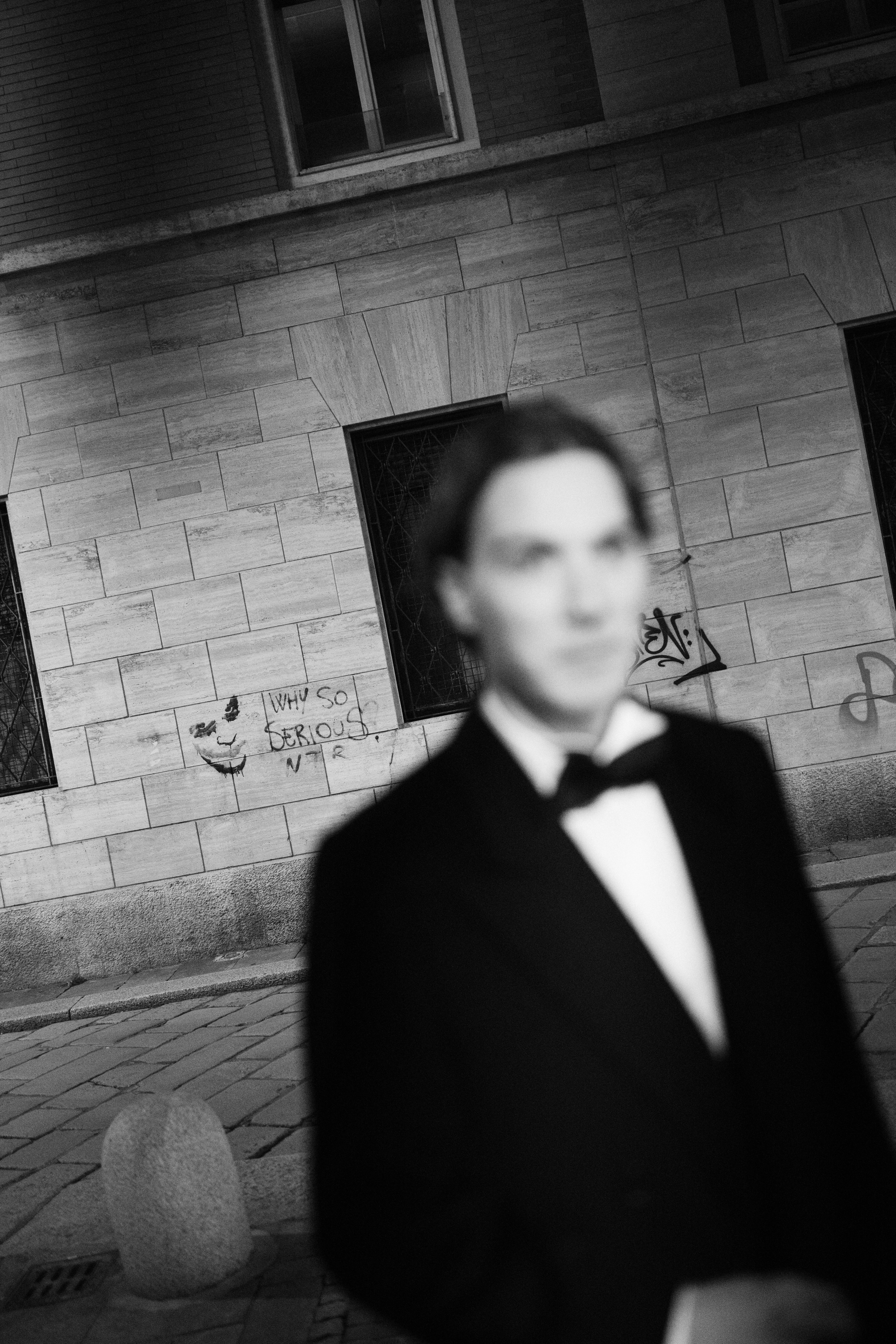 La città si intreccia delicatamente con la loro storia: lo sposo sfocato davanti a un graffito, la complicità nel buio della sera, i piatti della tradizione che aprono la cena.