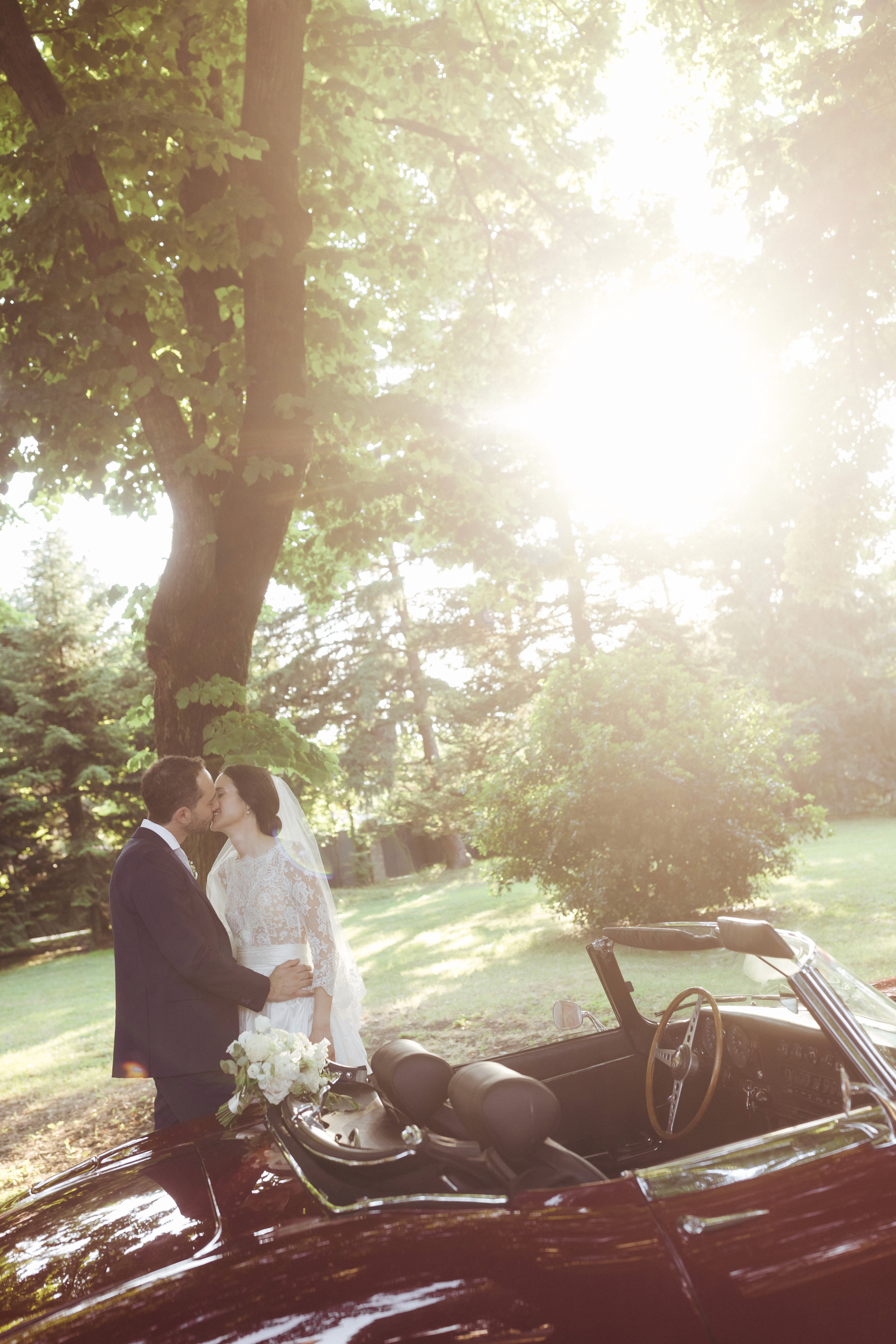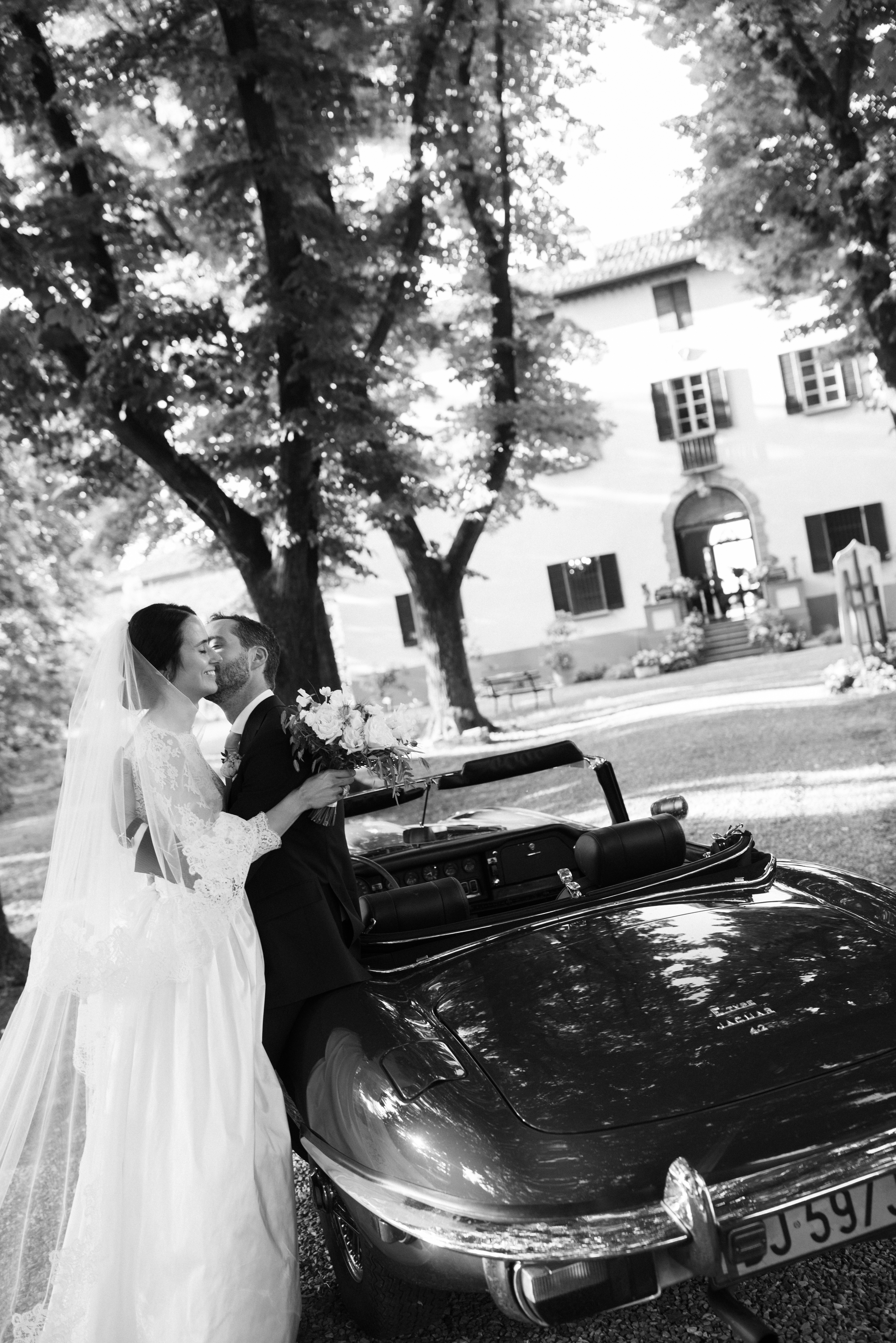 La luce entra prima di loro. Attraversa le persiane verdi, si posa sui mattoni morbidi della villa, si riflette sulla carrozzeria cremisi dell'auto d'epoca come un presagio silenzioso.