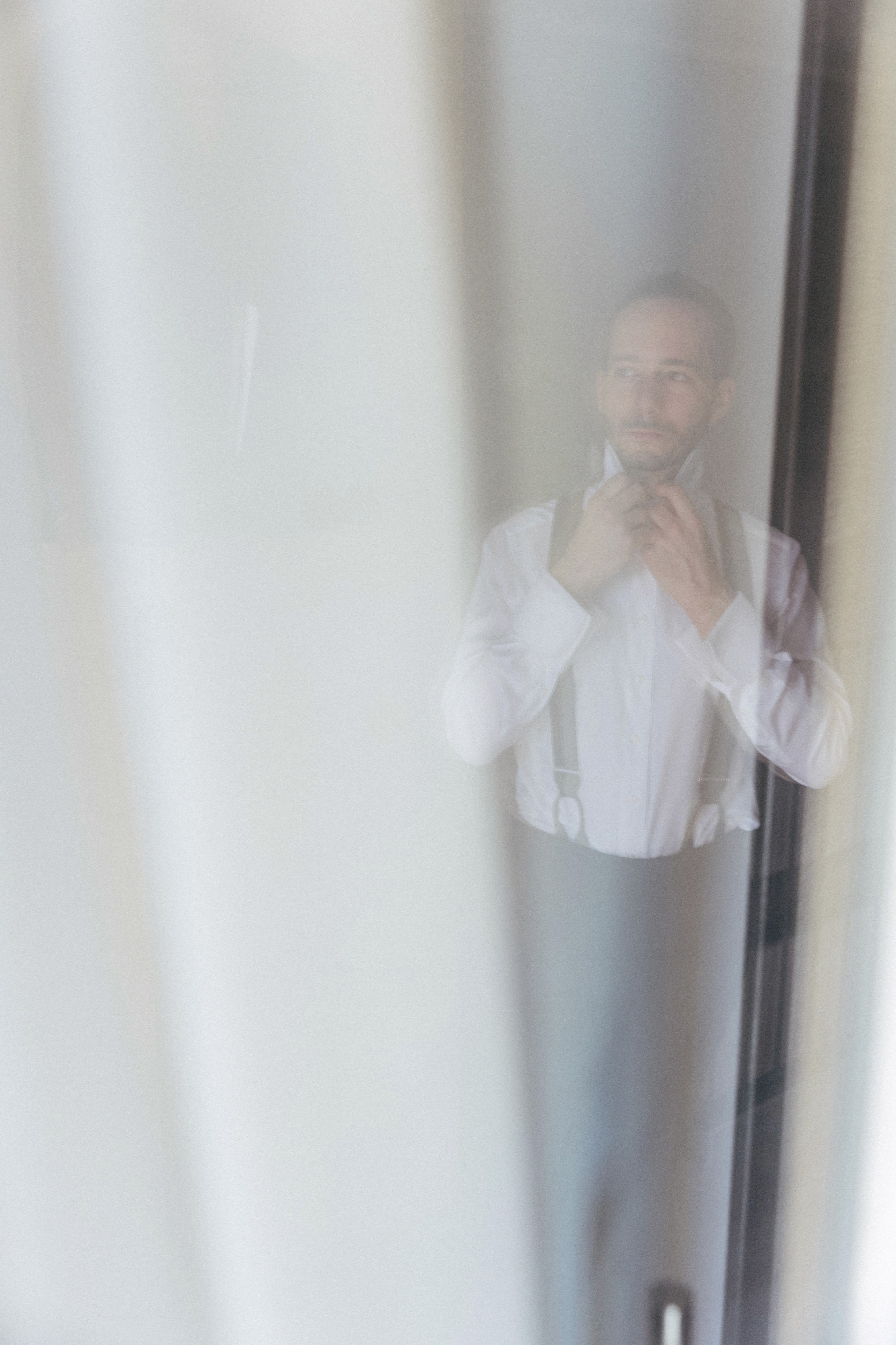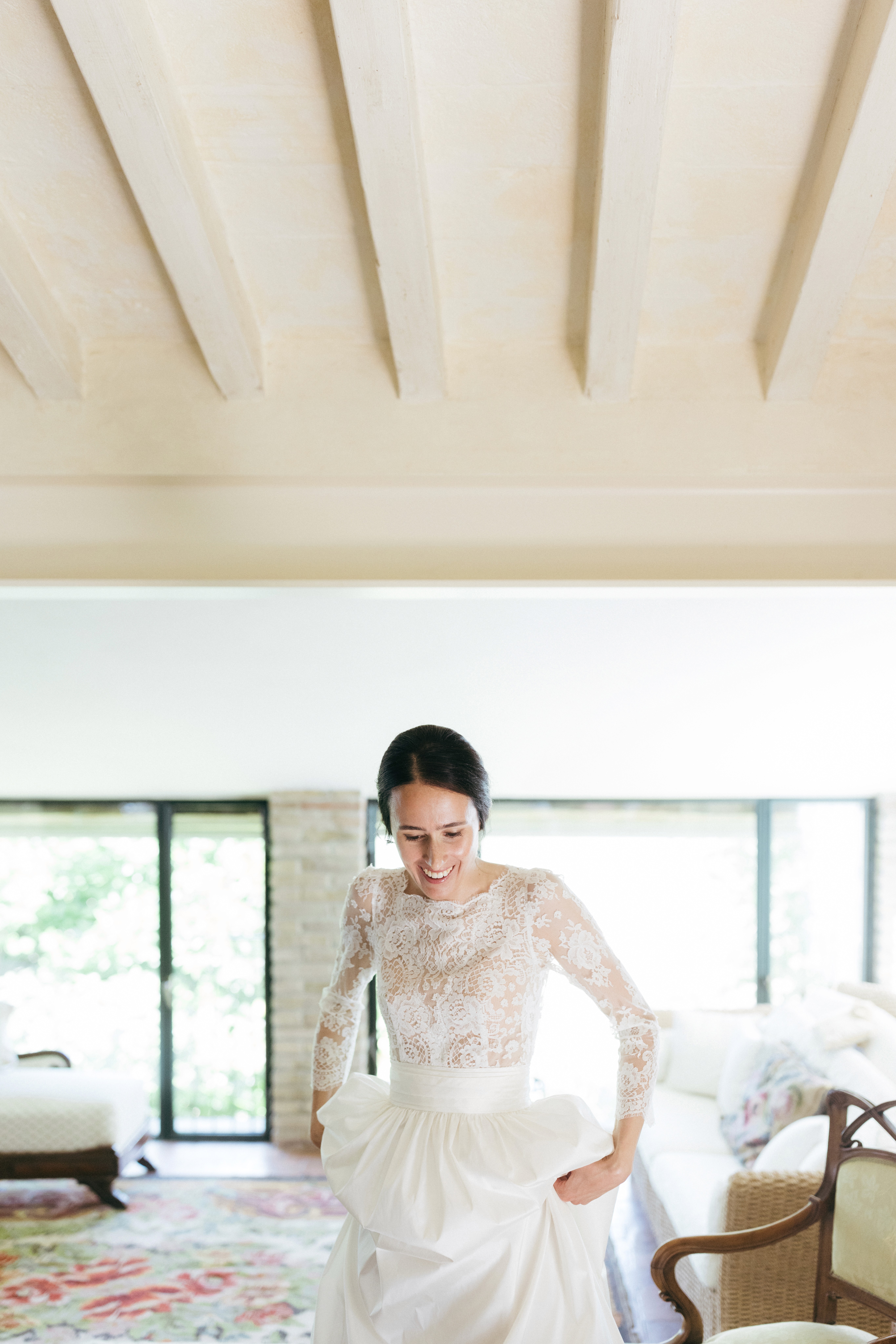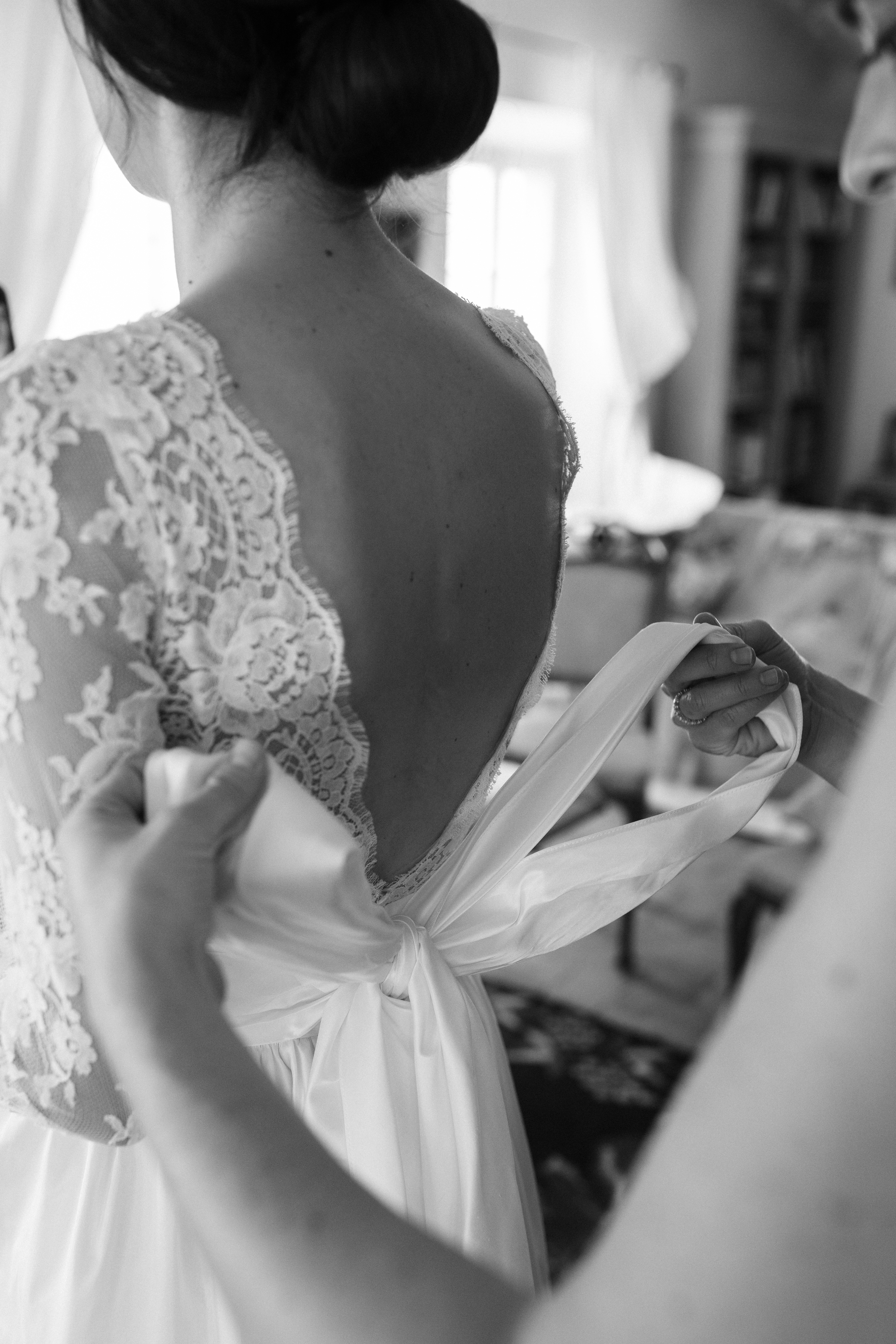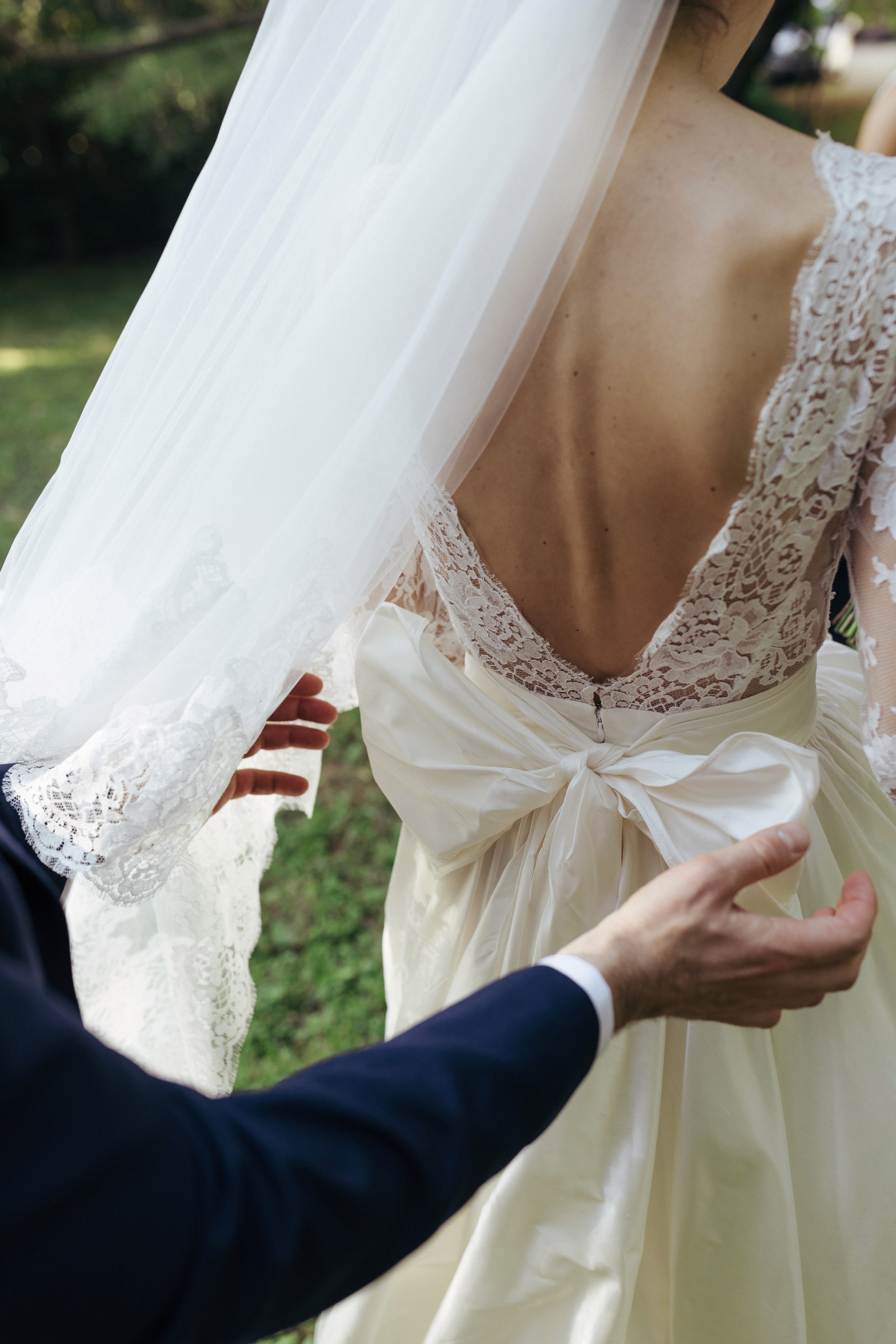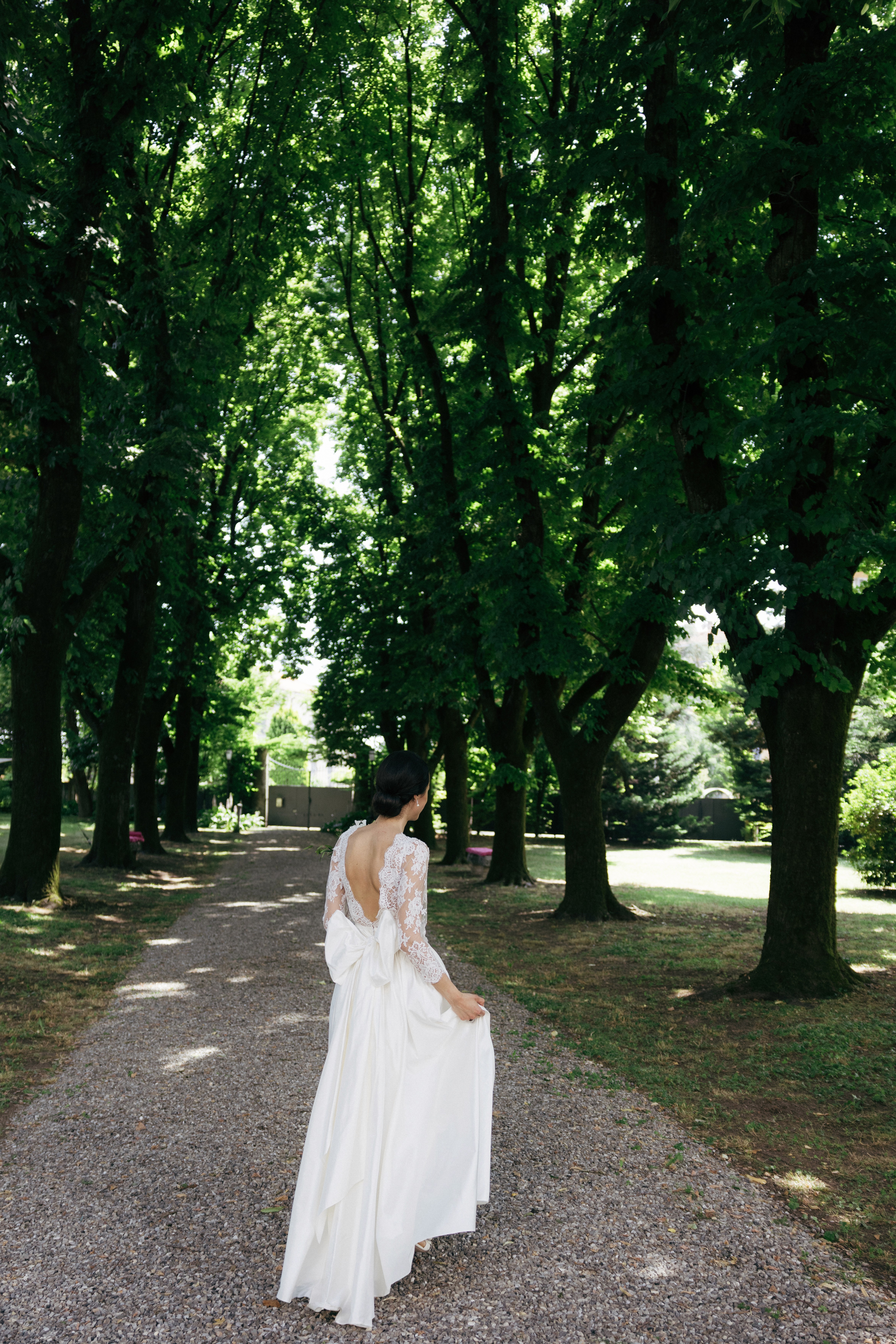 Il 31 maggio ha la nitidezza delle giornate che non chiedono nulla di più. L'abito attende sospeso alla finestra, disegnando una verticale leggera contro la facciata; dentro, il pizzo racconta la sua trama da vicino, tra nodi stretti con cura e trasparenze che sfiorano la pelle. Ogni dettaglio è una linea che guida lo sguardo.